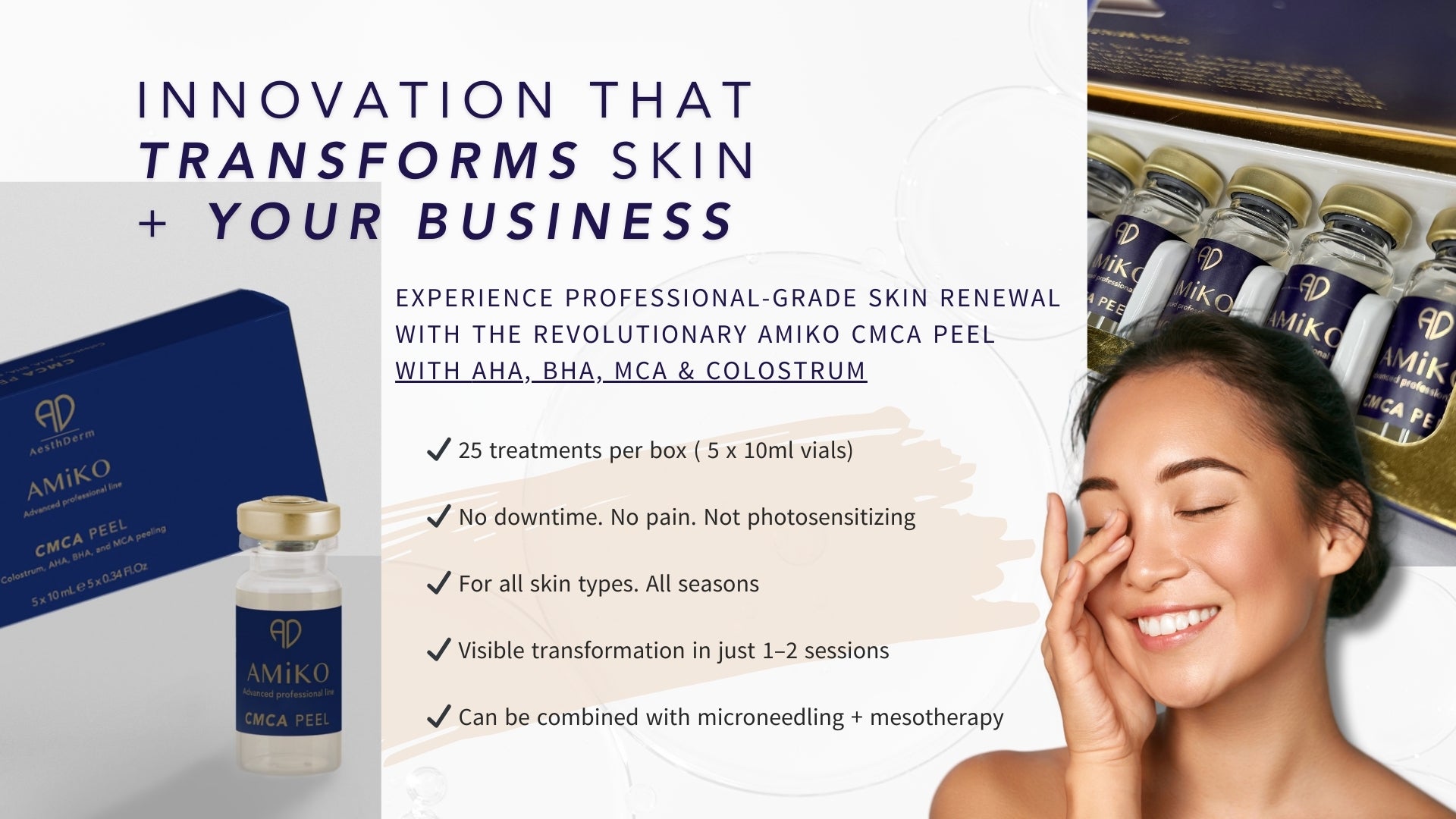 AMiKO CMCA PEEL: Colostrum, AHA, BHA, and MCA peel (5 x 10ml)